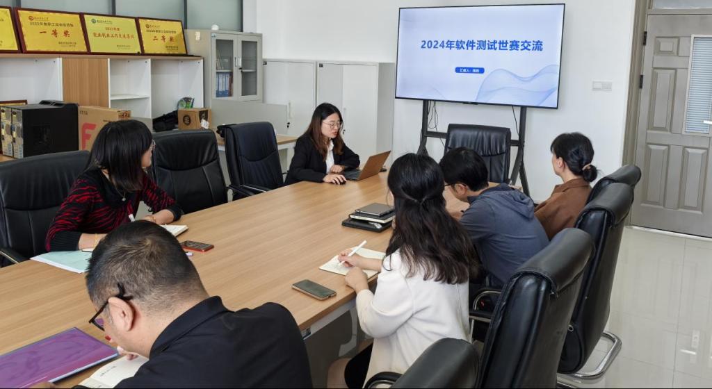 分享会上,“软件测试”赛项指导教师周燕就比赛过程进行了详细的复盘,全面总结了此次比赛获奖的经验与教训,提出需改进的方面;“物联网应用开发”赛项指导教师鲍毅通过与其他参赛院校交流学习的方式,进行赛后横向对比,总结了比赛经验及不足。