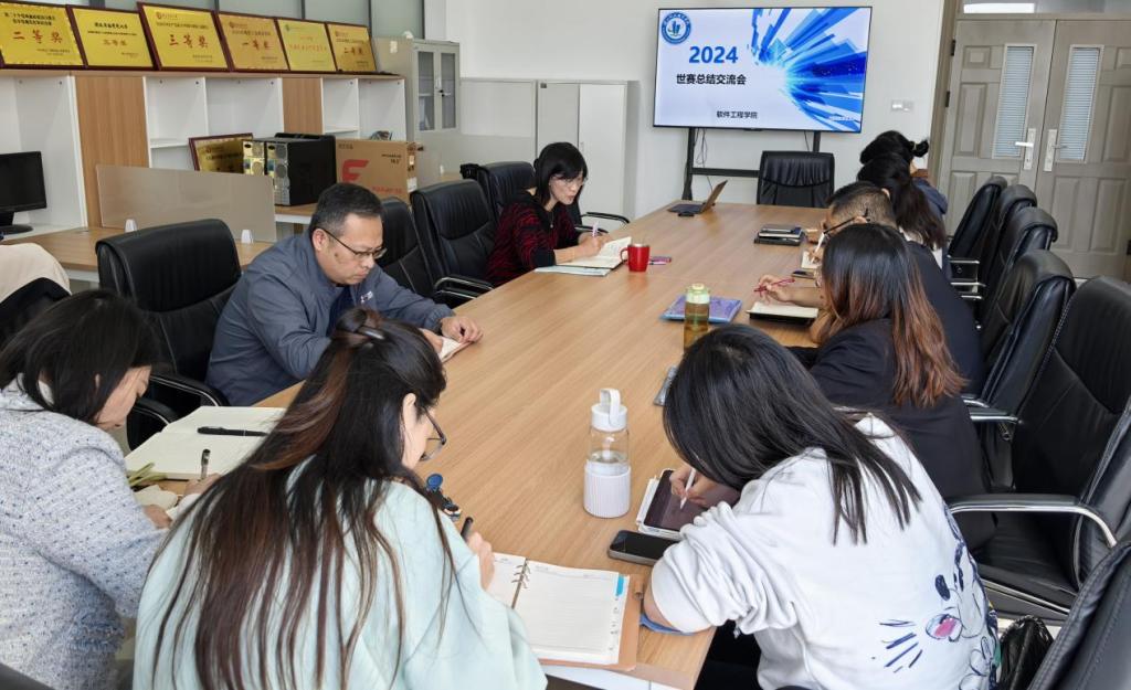 本网讯(通讯员 柯维 文/图)随着2024年世界职业院校技能大赛总决赛争夺赛的顺利落幕,软件工程学院在本年度收获了一银一铜的优异成绩。为了进一步加强技能大赛在我院专业建设中的引领、指导作用,助推教育教学改革,提升师生技能水平,强化大赛效能,11月7日下午软件工程学院召开了2024年世界技能大赛总结分享会活动,活动由院长王敏主持,各教研室、专业负责人及指导教师团队参加了本次活动。