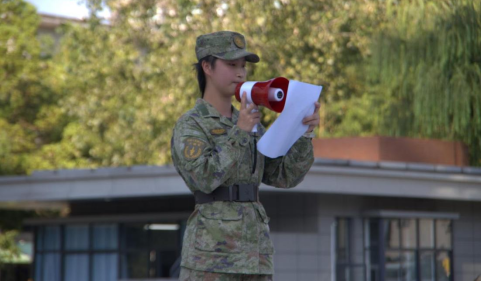 “稍息、立正、向右看齐”由6名教官和6名女生组成的单个军人队列动作示范分队迅速集结,在教官洪亮的口令指挥下,从整齐报数到步伐变换,他们以最高标准向全场完整地展示了全部队列动作。从6名女生干净利落的动作中可以看出,军人的雷厉风行、整齐划一的作风已然深植于她们的内心。