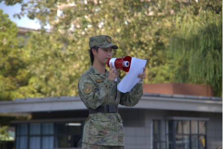 军训期间,退伍大学生万冰在“朋辈讲堂”上,用自己在军营的训练、生活、成长经历和军营感悟,讲述了从军报国的初心使命,分享了部队“大熔炉”淬火成钢的青春故事,加深了同学们对军旅生活的认识,激发了同学们的爱国热情。同时,为庆祝中华人民共和国成立75周年,学院创新组织新生传唱活动,用歌声告白祖国,展现湖科学子为实现中国梦而努力奋斗的青春风采。