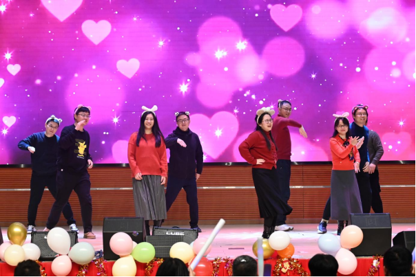 辅导员和教工支部的老师们也不甘示弱,带来了风格各异的节目。玩偶道具和肢体语言相互配合的《趣味小人舞》、温婉悠扬的歌曲《上春山》、脱口秀和歌舞兼具的《相亲相爱》,让观众们看到了老师们不同寻常的一面,为晚会增添了别样的温情与欢乐。此外,晚会还设置了抽奖环节,为观众们带来了意想不到的惊喜。