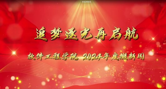 晚会开始前,舞台大屏幕播放了软件工程学院年度微新闻,从主题教育、技能竞赛、教学建设、产教研融合、社会服务、教工队伍能力提升、拓岗就业、社会实践、校园活动9个方面全面概括了学院2024年的主要工作和亮点成绩。