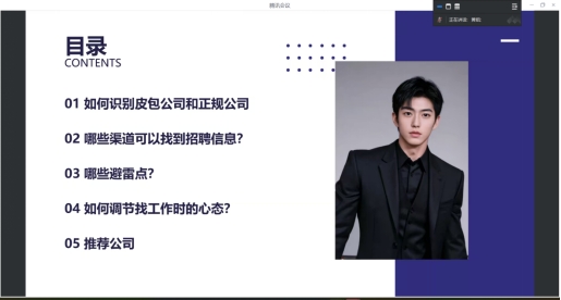 本网讯(通讯员 吴豫 高苗苗/文 覃月梅 朱思雨/图)为扎实做好2025届毕业生就业创业工作,加强顶岗实习学生的管理,引导毕业生树立正确的就业观念,提升就业指导和就业服务质量,1月12日,软件工程学院开展2025年就业服务系列活动之职业生涯规划经验线上分享会,以对话青春榜样的形式,邀请了9名校友分别从升学、参军入伍、西部计划、就业与创业等方面讲述自己成长经历,分享学习和职场经验,学院200余名同学参加会议。