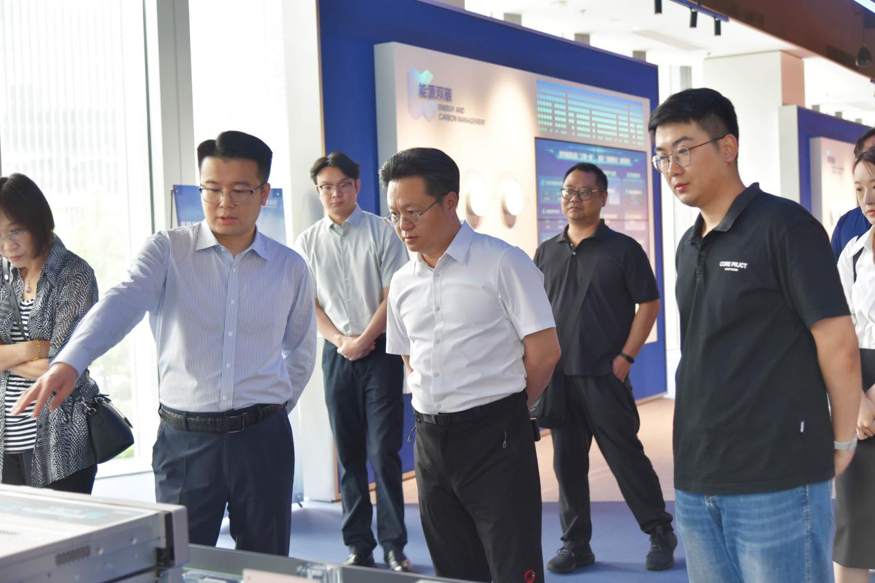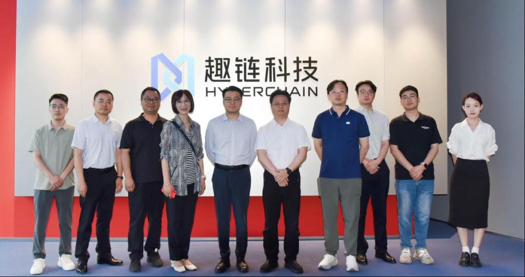 陈志祥一行在杭州趣链科技有限公司副总裁匡立中陪同下参观了趣链产业园,观摩了公司在金融、能源、医疗、农业、双碳等高需求高频率领域数据协同的应用成果。