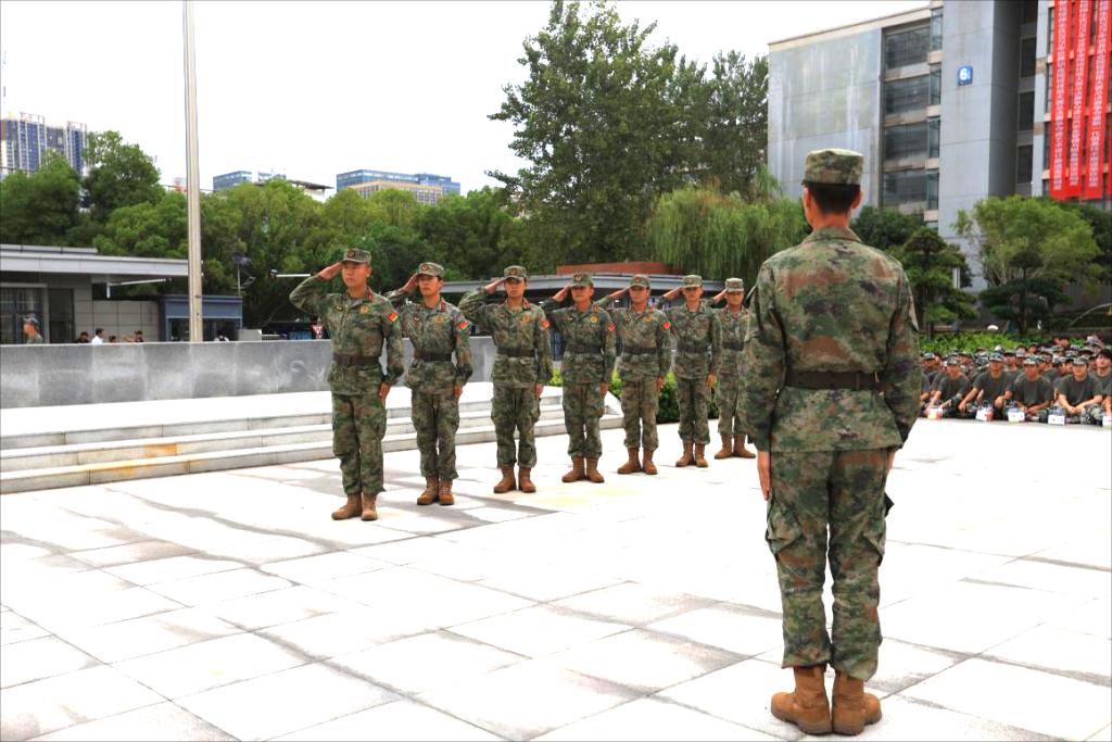 在教官队列展示环节,全体教官以饱满的精神状态、铿锵有力的口号、精准规范的动作,为师生们呈现了一场精彩的队列表演。立正稍息、停止间转法、齐步走、正步走、跑步走等基础队列动作一气呵成,充分展现了人民子弟兵过硬的军事素质和良好的精神风貌。
