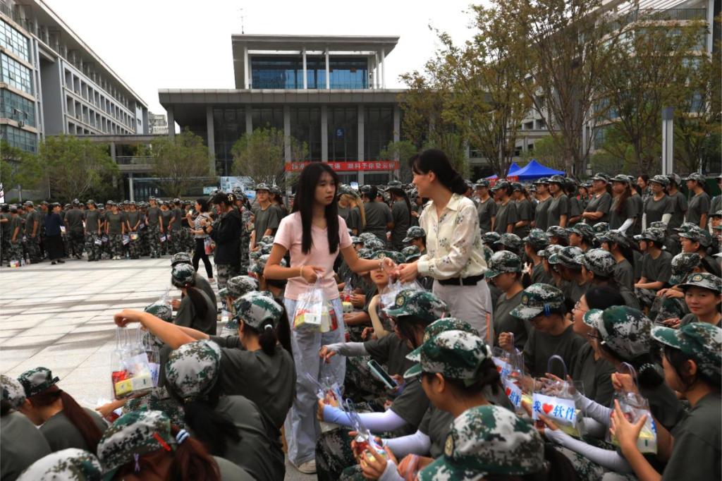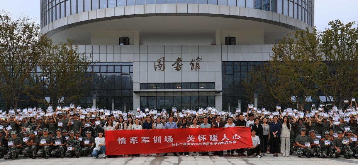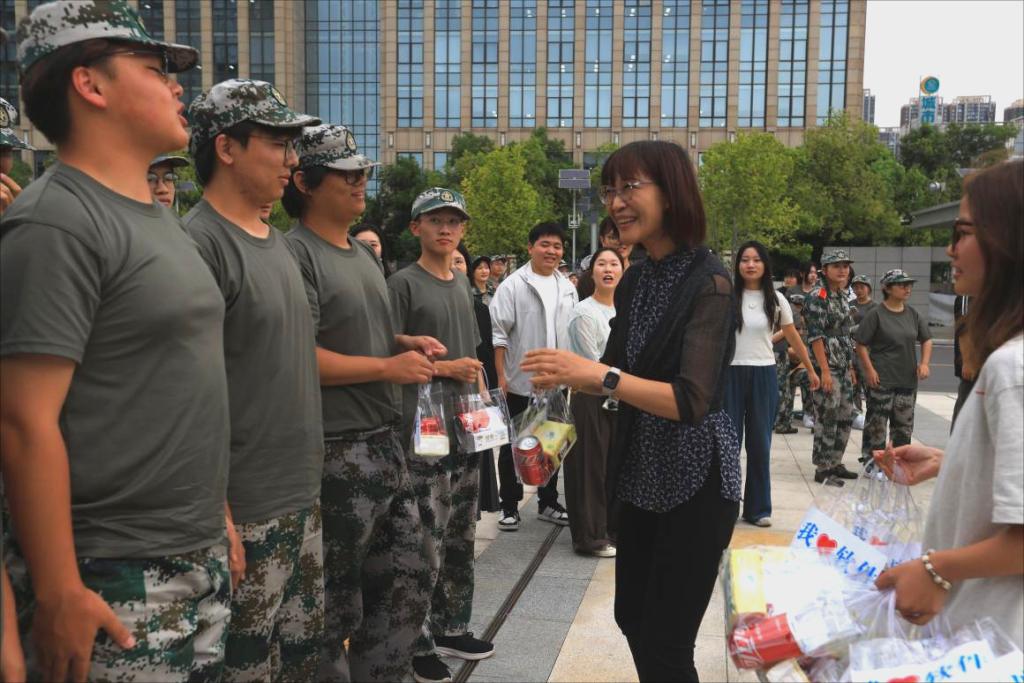 本网讯(通讯员:吴豫/文 方靖 王成卓/图)秋阳淬炼青春志,戎装不负少年时。9月23日下午,软件工程学院院领导、专任教师及全体专兼职辅导员前往北广场亲切慰问正在接受军事训练的2025级新生,为他们送去清凉饮品和暖心零食,传递学院的殷殷关怀与深切期望。