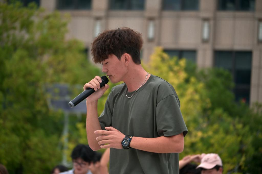 才艺表演环节将现场气氛推向高潮,各连队学子轮番登场,展现多元青春魅力。经典歌曲《日不落》的女团舞活力四射,引来阵阵欢呼;《阿刁》《游京》等高难度歌曲被同学们深情演绎,展现出不凡的音乐素养;来自新疆学子的一首《如果可以》深情动人,用歌声传递出民族团结的温暖情谊。舞台虽简,却成为青春绽放的天地,掌声与欢笑此起彼伏。