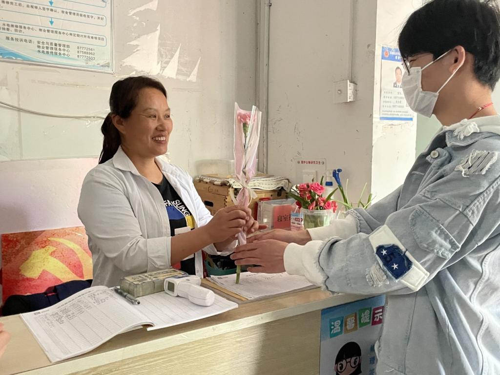 学院开展“劳动教育周”系列文化活动,让同学们在“寝室好声音”活动中亲手营造温馨美观的寝室环境,从而深化对劳动美的理解和热爱;让同学们在“嘴角上扬15度”活动中将花束和亲手制作的“笑脸”献给辛勤工作的老师和风吹日晒都坚守岗位的宿管阿姨、保安叔叔,感悟劳育的魅力;让同学们在主题学习活动中提高劳动知识素养,认同劳动价值……学院搭建起不同行业劳动者与青年学生之间的桥梁,引领同学们乐于奉献,感悟劳动之美。