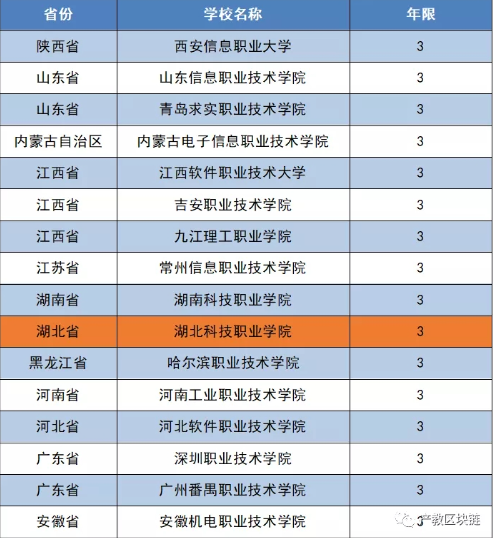 据专业备案结果统计,全国16所高职院校成功申报区块链技术应用专业,专业代码510212。专业学习年限3年。