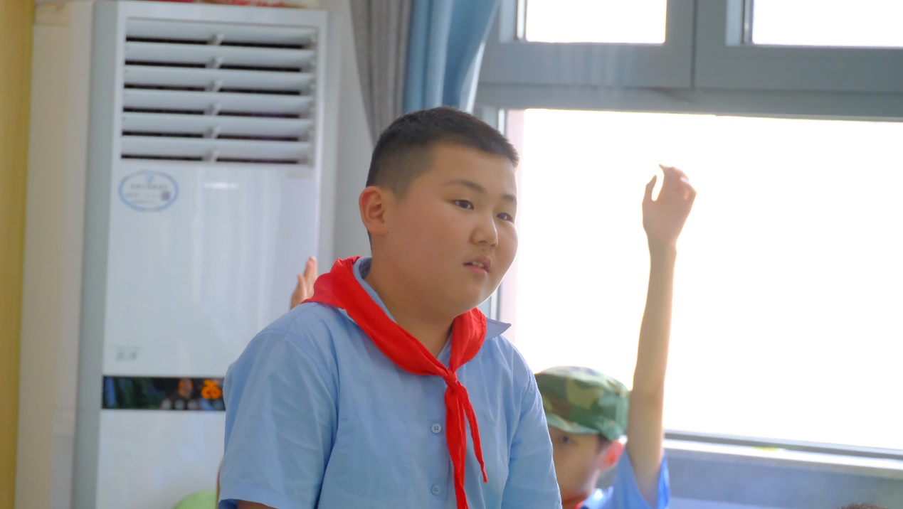 张逸杰用中印冲突的一段视频开启了本场班会,他为孩子们讲述了自己怀揣报国梦想、立志从军,两年多的时间先后在福建、上海和南沙群岛戍边卫国的经历,从服役环境、日常训练、岛礁实训到前线作战。他教育引导孩子们:“我们不是生活在一个和平的时代,而是生活在一个和平的国家,一定要珍惜现在的美好生活,努力学习,建设祖国。”