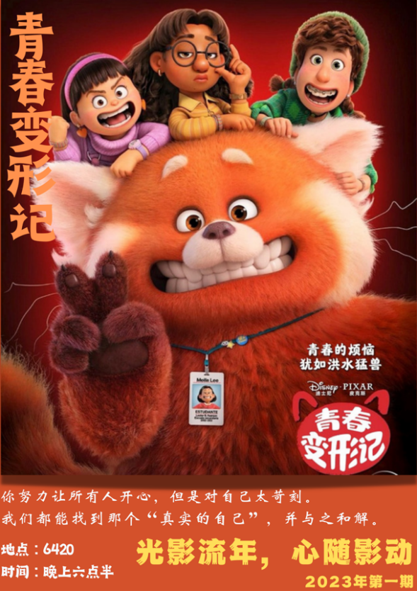 本次观影活动,不仅让同学们心理的压力得到了释放,也让大家明白,每个人的内心都有一只红色熊猫,它有情绪,有想法。但重要的不是驱逐,而是学会拥抱,接纳自己的“红色熊猫”。后续学院将持续开展系列活动,以轻松愉快的方式帮助同学们培育自尊自信、理性平和、积极向上的健康心态,悦纳自我,规划未来,在青春的赛道上向前奔跑。