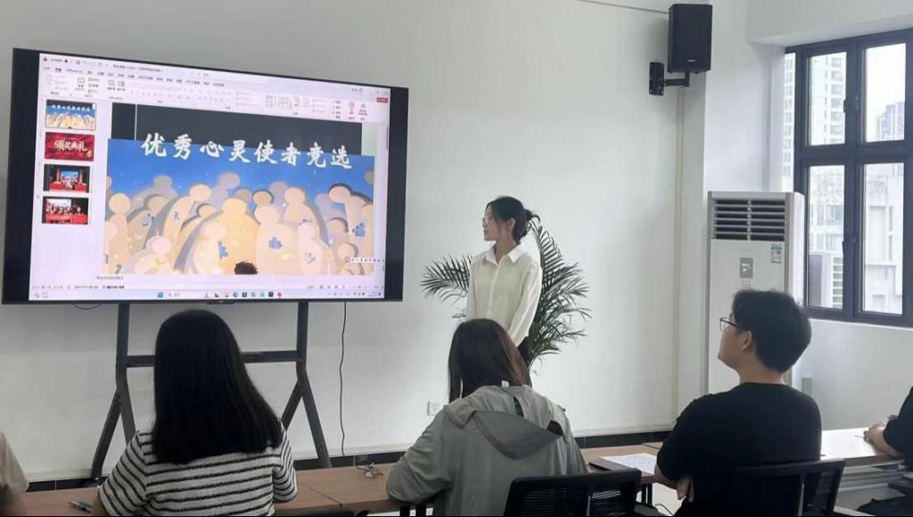 “优秀心灵使者”评选活动中,选手们结合身边生动案例分别从个人风采展示、工作概况、工作成果、反思感悟等方面展现个人特色,时有诙谐幽默之言,时有真情实感流露,充分展现出了心灵使者的精神面貌与卓然风采。